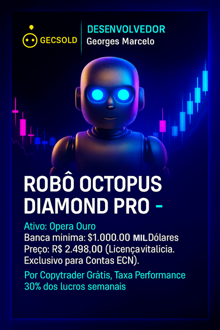 O ROBÔ OCTOPUS DIAMOND PRO, GRATUIDO VIA COPYTRADER NA ROBOFOREX (NEM VPS PRECISA) e Pode Acompanhar Todos os Resultados por APP do Celular.